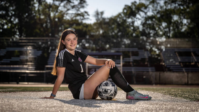 Over 20 games, she recorded seven shutouts, allowed just 25 goals, and made 115 saves — averaging six per match. She was repeatedly recognized across the state, earning nominations for Defensive MVP and North Jersey Soccer Player of the Week four times before ultimately winning the regional honor on October 27. She was also named Defensive MVP of her conference, First Team All-League, First Team All-County, and was highlighted by NJ.com as one of the top girls soccer juniors in New Jersey.