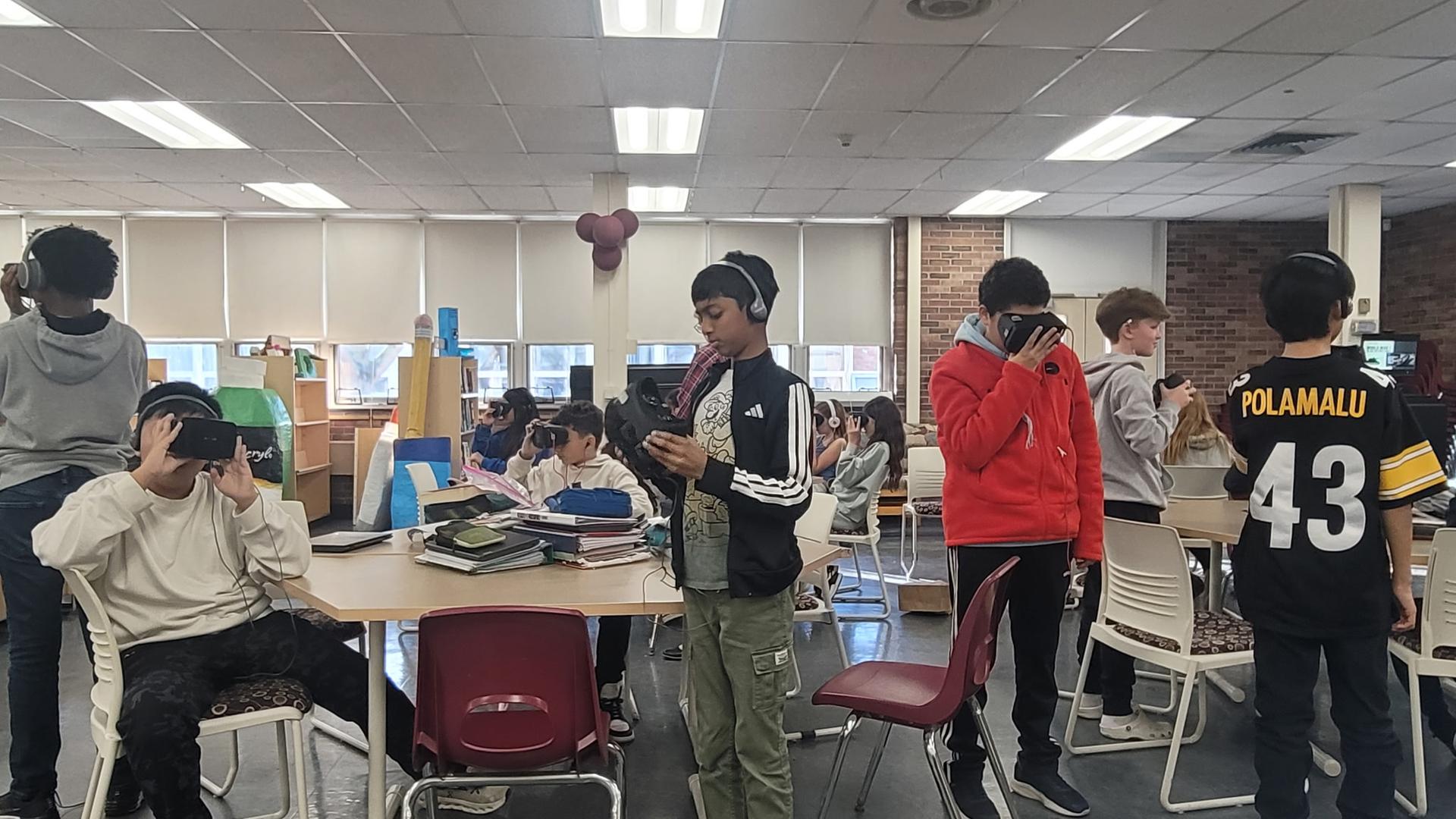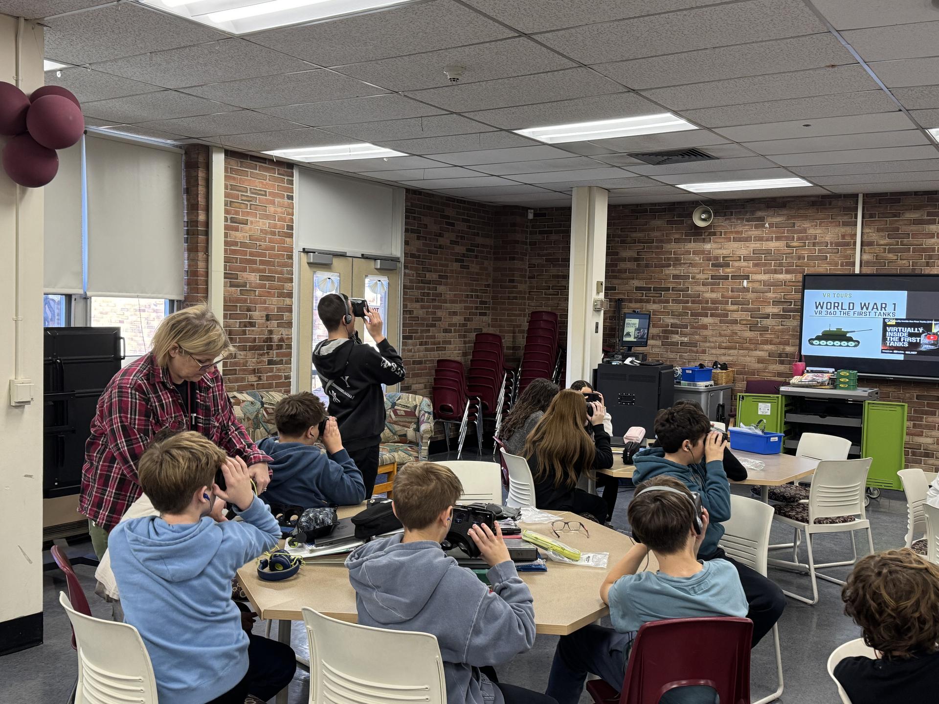 Schuyler Colfax Middle School 7th grade students in Mr. Buranicz and Mr. Betkowski’s classes, along with Mrs. Franks, Mrs. Adamo and Mrs. Mara, participated in virtual reality tours of WW1. Students went inside the first army tanks, trenches, no man’s land, and listened to commentary of veterans from that time. |