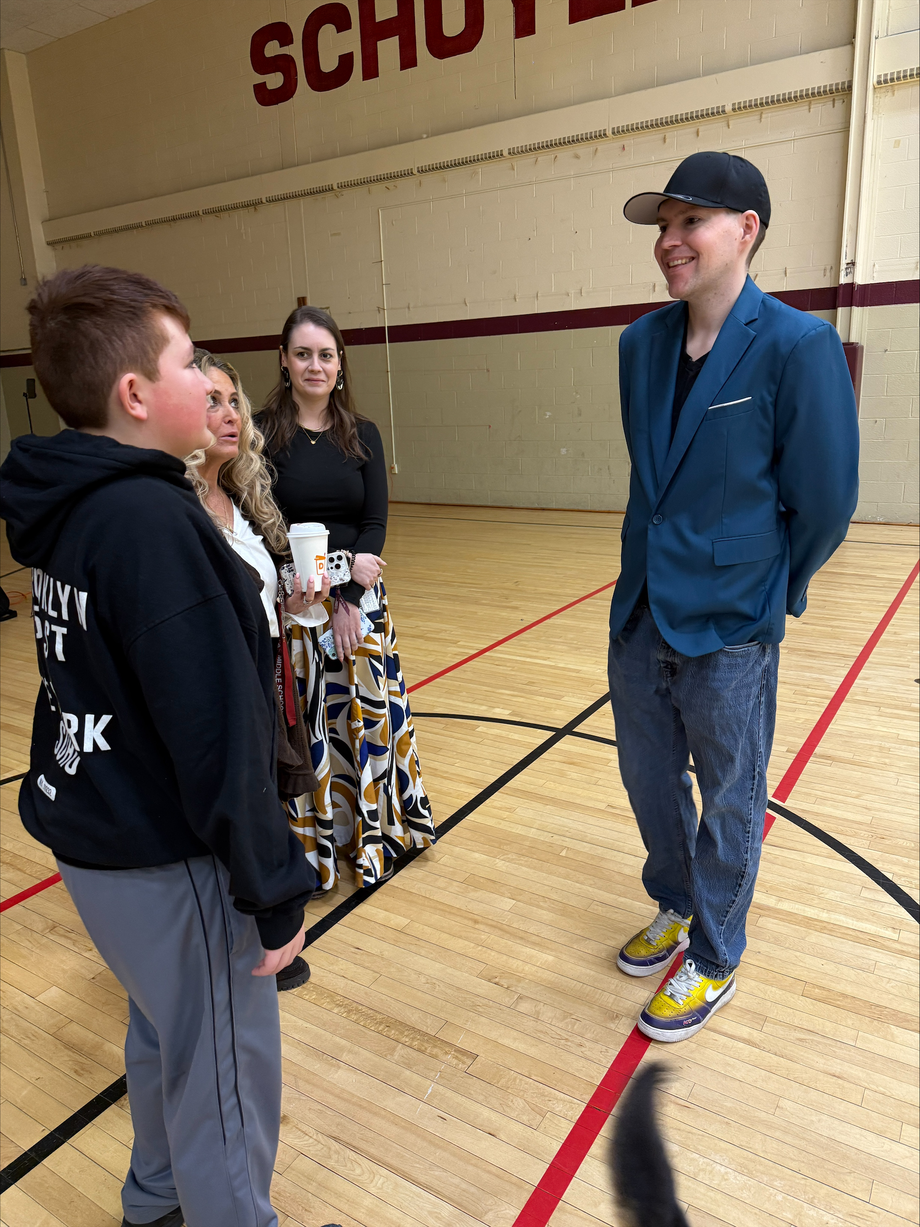 6th and 7th graders from Schuyler Colfax Middle School were present for a talk with Kerry Magro, Ed.D. Dr. Magro spoke from the heart about his personal challenges with autism and bullying growing up, as well as the successes he found later in life through public speaking. He connected with students through his love of basketball, music, and sharing stories of celebrities with differing abilities. He also spoke with our students about what it means to be a true ally and friend through empathy, understanding, and communication. Our students were wonderfully receptive, engaged, and eager to share thoughts and questions at the end. We thank Dr. Magro for his time today with our Schuyler family!