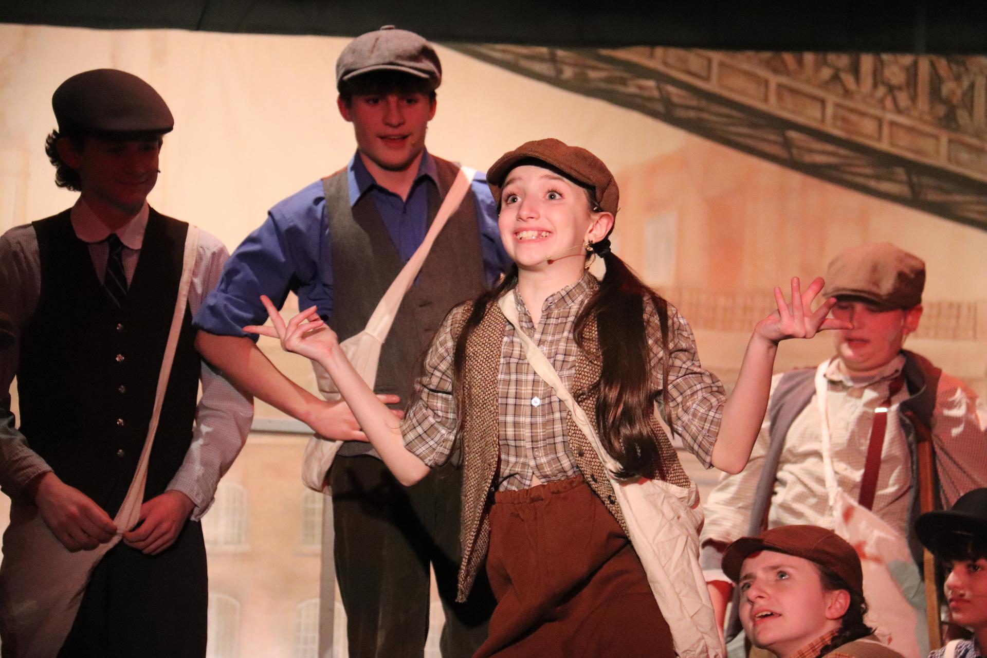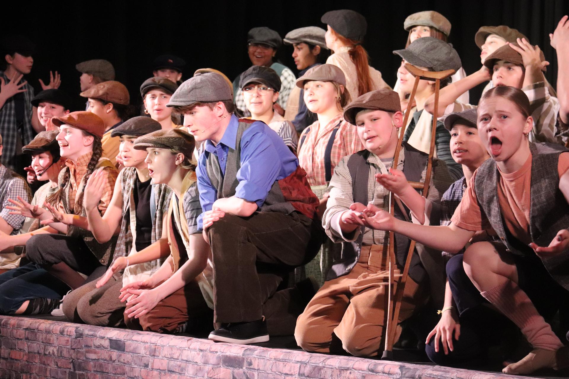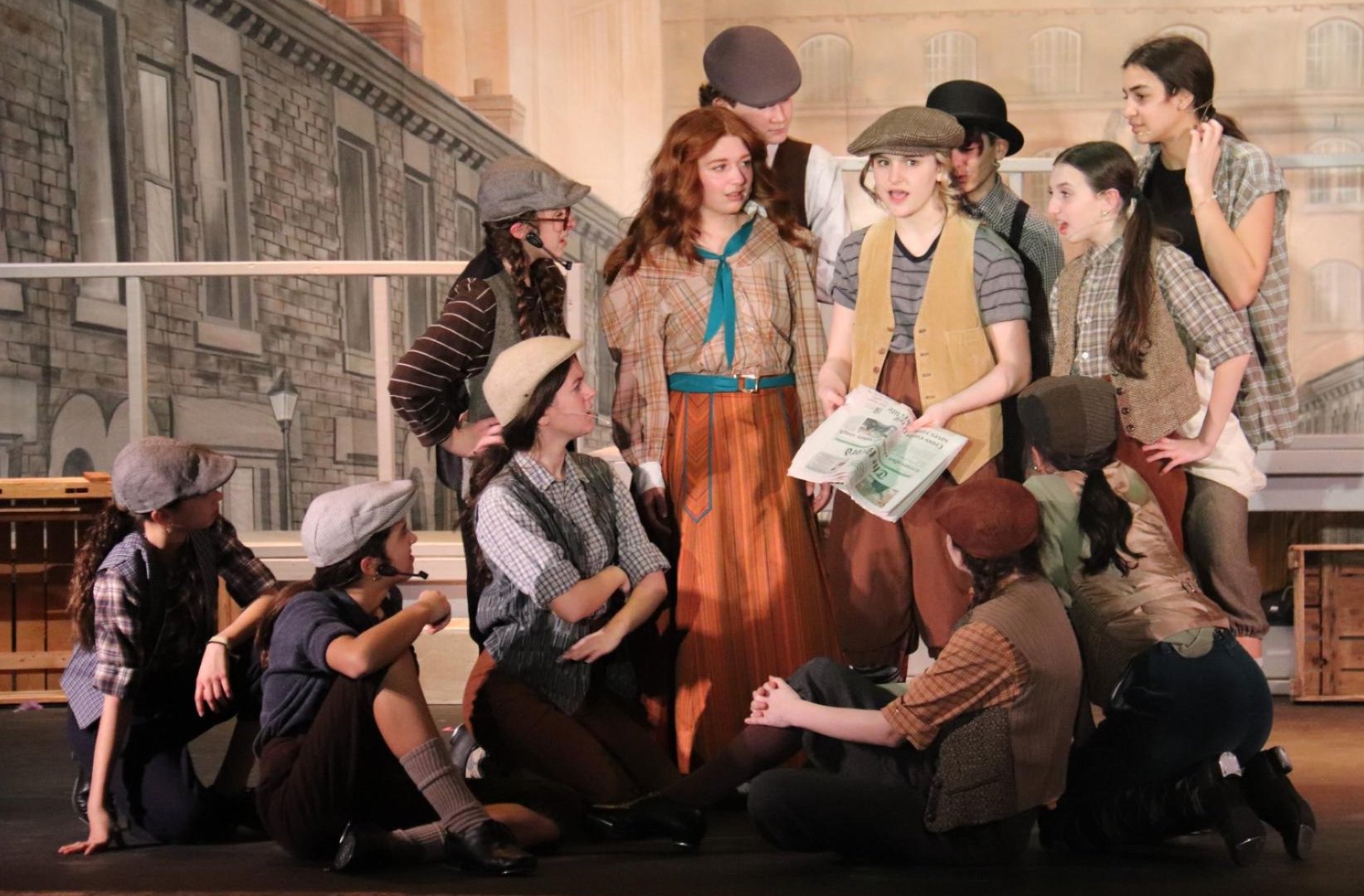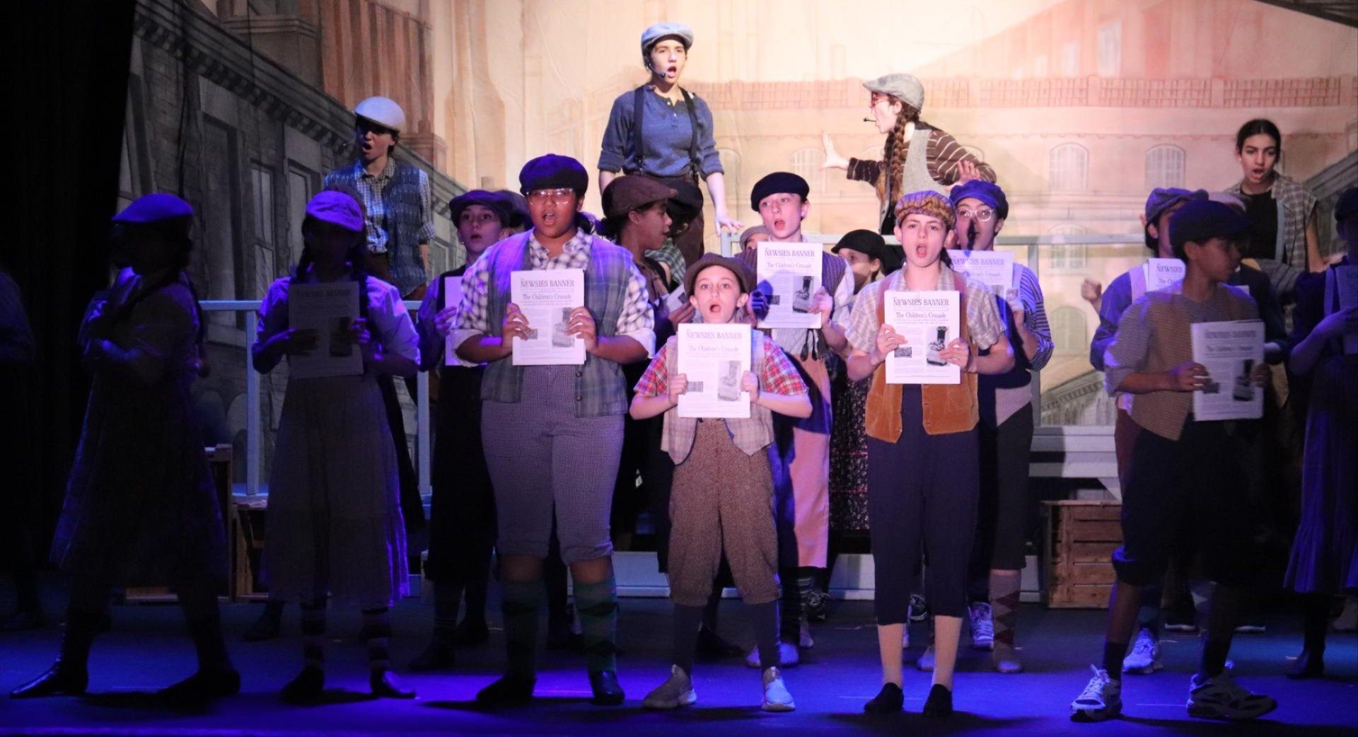 The audience was captivated by the stellar performances of Ryan Wyatt (8th grade) as Jack Kelly, David Gilgur (8th grade) as Crutchie, Charles Macones (8th grade) as Davey, Kristopher Mikhail (8th grade) as Les, Daniella Faber (8th grade) as Katherine Plumber, Ava Scavone (8th grade) as Medda Larkin, Tom Nick-Nelson (8th grade) as Joseph Pulitzer and Dance Captain, Samantha Houser (8th Grade). They were joined by more than 100 dedicated students in the cast and crew who danced and sang their hearts out. From high-energy choreographed numbers to powerful ensemble scenes, the cast and crew delivered a truly unforgettable experience and brought the inspiring story of the Newsboysβ Strike of 1899 to life.