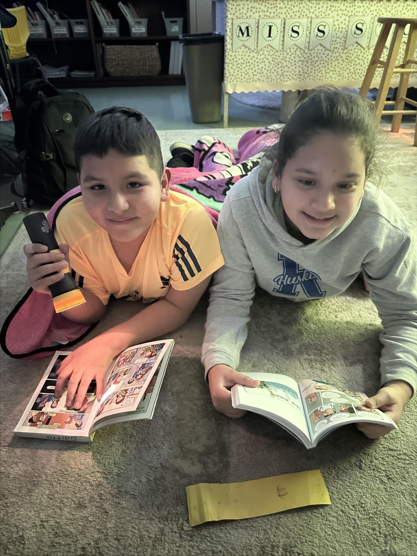 Students in Miss Stoutβs fourth-grade class at Ryerson Elementary have been working incredibly hard to fill their token jar and earn a special rewardβFlashlight Reading! After reaching their goal, students enjoyed a cozy and well-deserved celebration. With the lights dimmed and flashlights in hand, they snuggled up with blankets and a book of their choice. It was a wonderful way to celebrate their teamwork and positive behavior! |