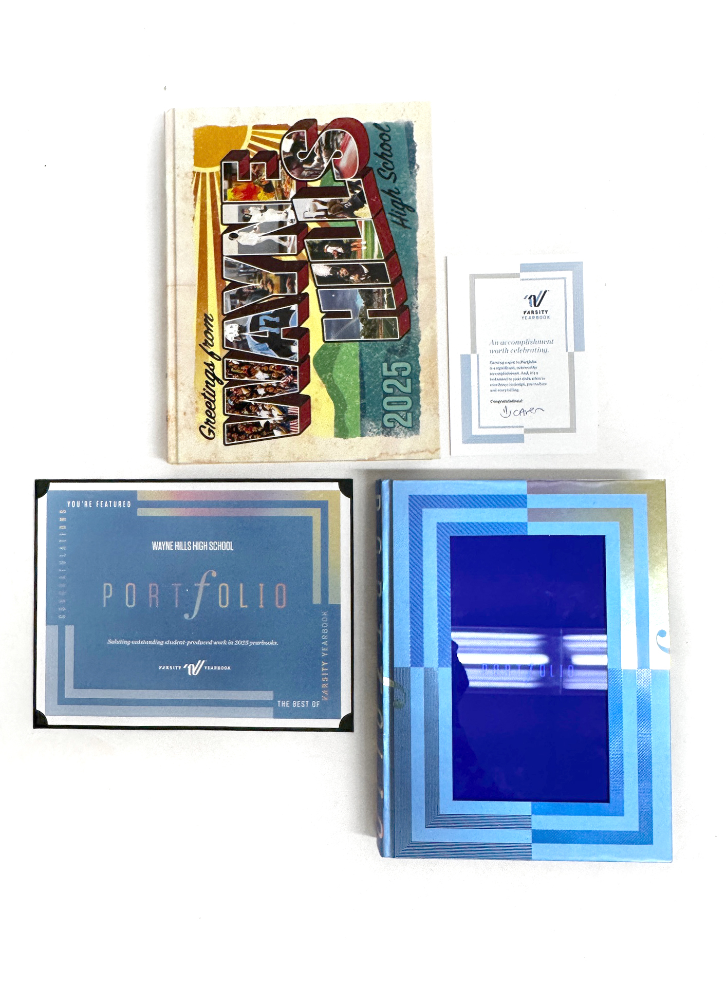 The Wayne Hills 2025β2026 yearbook has been selected for inclusion in Varsity Yearbookβs national Portfolio publication, which recognizes the top 10% of yearbooks they produce across the United States and Canada. Our yearbook was specifically highlighted for its creative cover design, which draws inspiration from a vintage postcard to complement the bookβs scrapbook theme. Congratulations to our talented student yearbook staff for this outstanding recognition and for producing a publication that so thoughtfully captures the spirit of the Wayne Hills community.