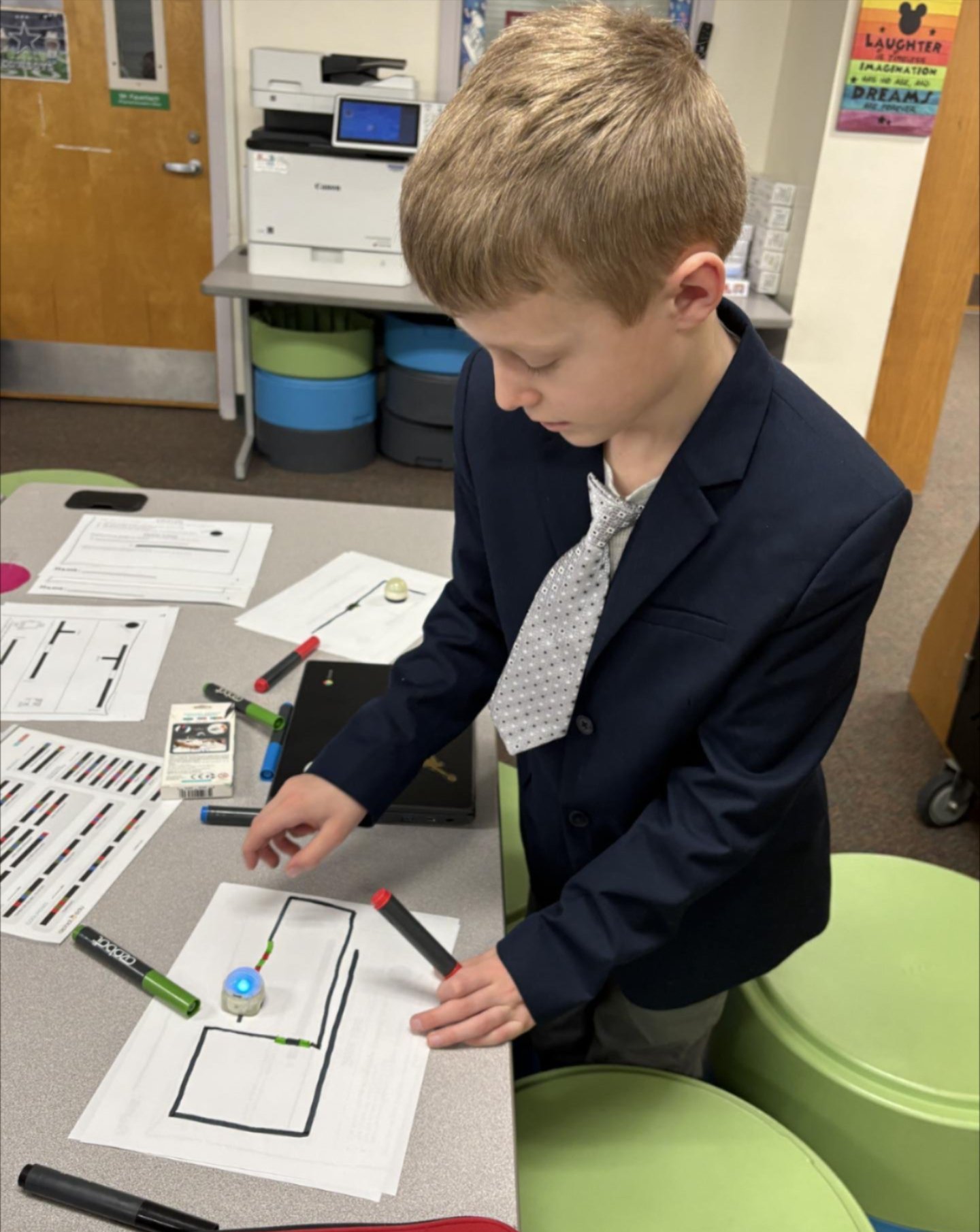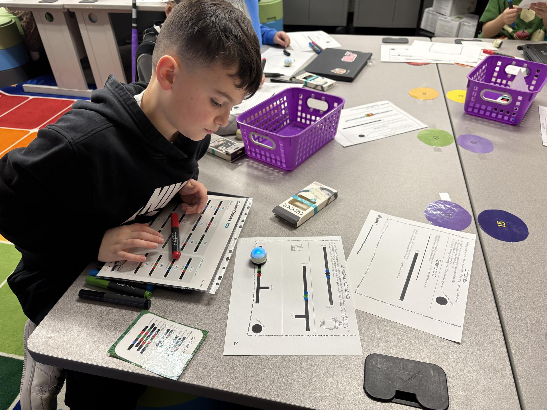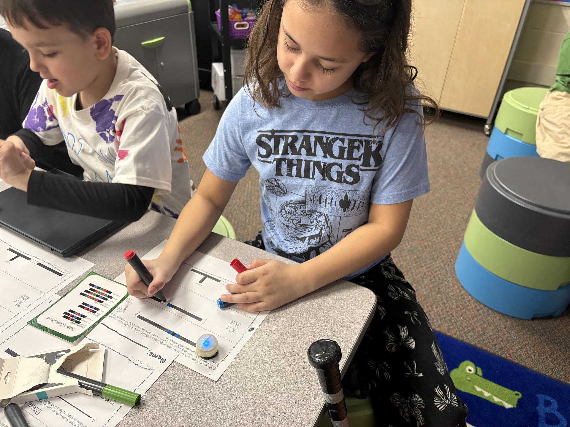 Students at Lafayette work excitedly in the Library Media Center as they guide Ozobot robots along colorful coded paths, turning coding lessons into a hands-on exploration of logic and creativity. |