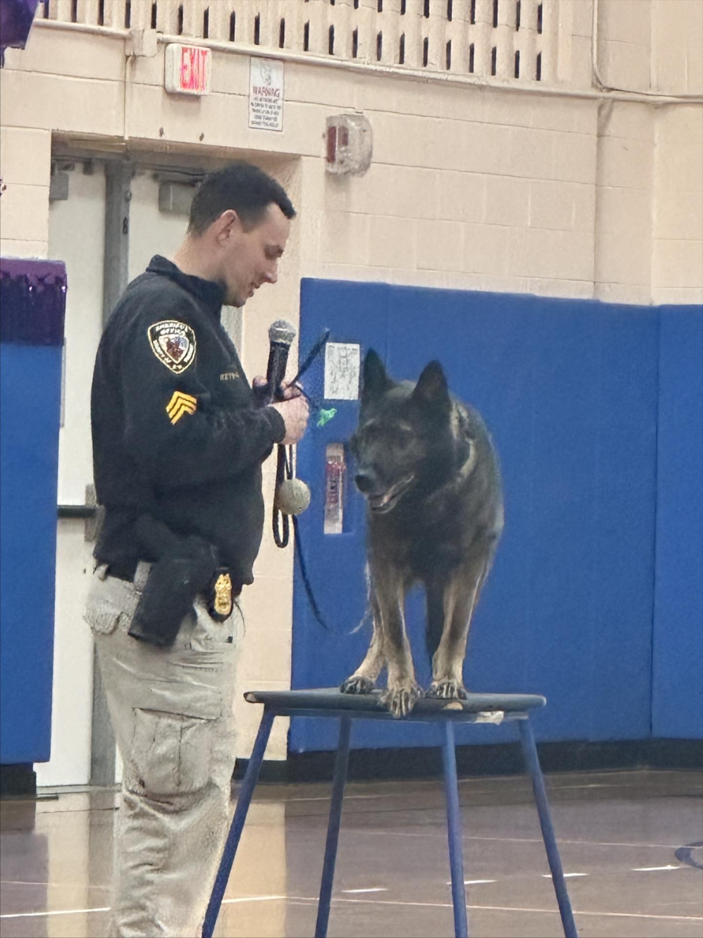 We began the day with a visit from Sergeant Keith Heyman and the K-9 officers of the Passaic County Sheriff's Office. As a team, the officers presented their training and abilities during a school-wide assembly. Superintendent Mr. Cittadino and Assistant Superintendent Dr. Kazmark were in attendance at the presentation and joined in the fun.