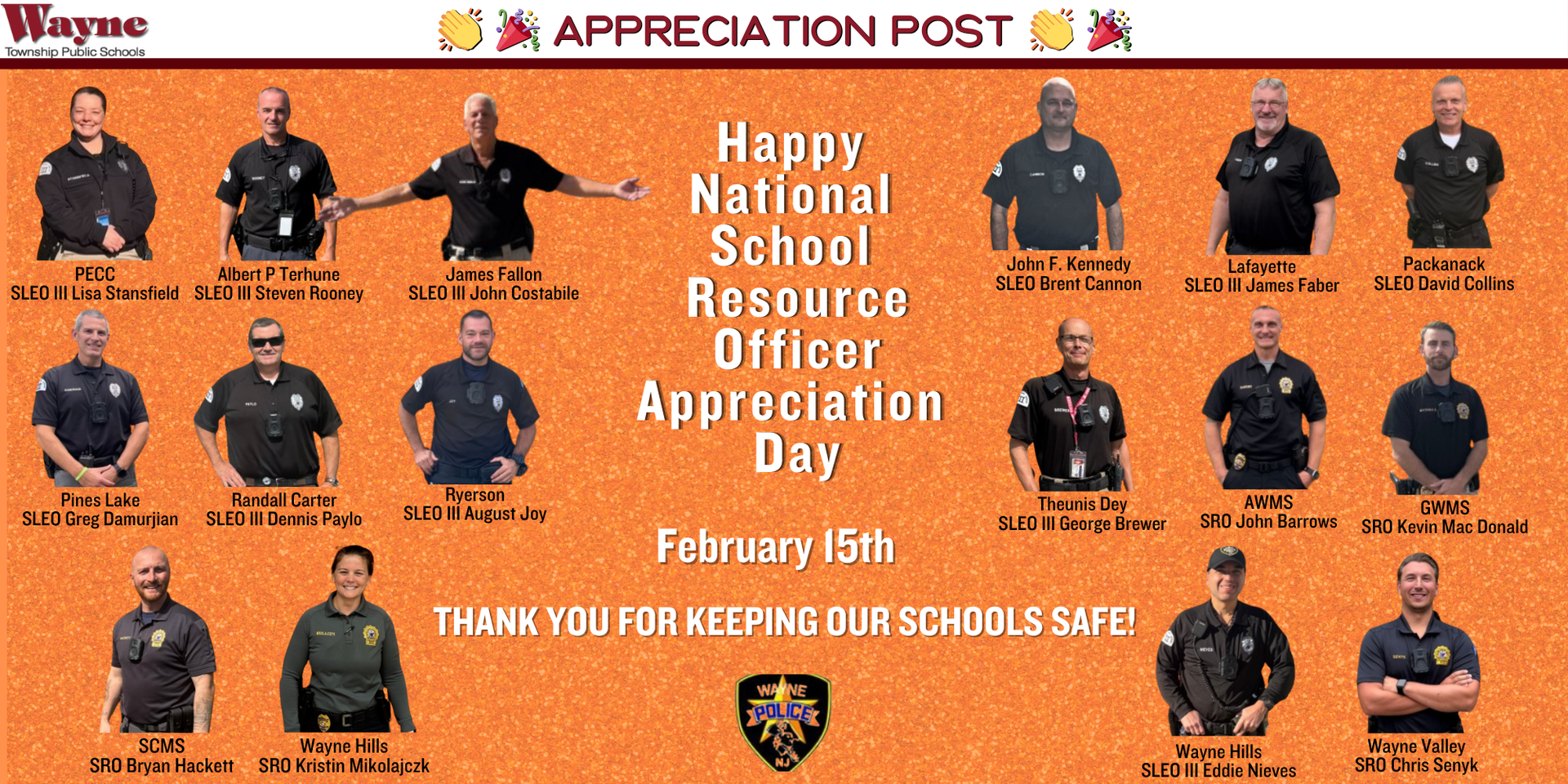 Learn about the Wayne Police Officers serving and protecting in your schools! @waynepolicenj
